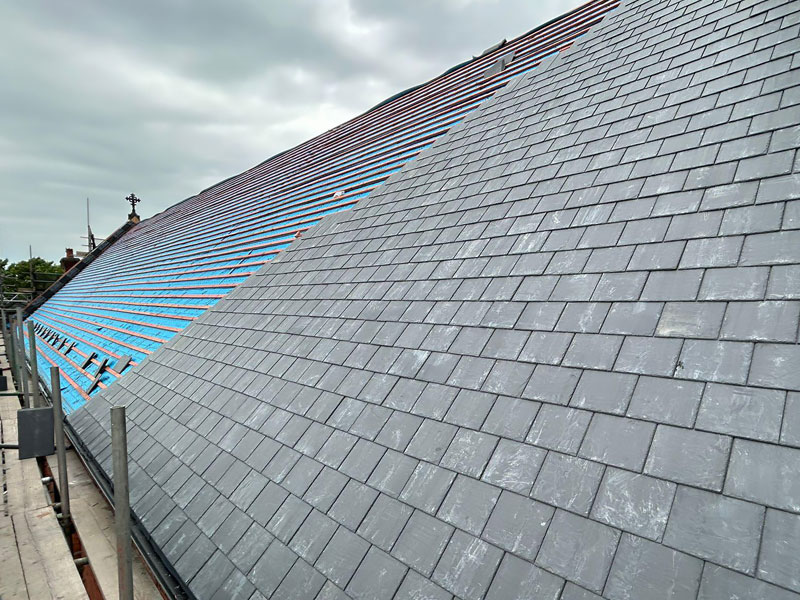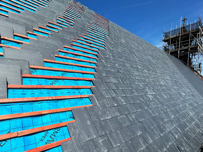 The slates were installed with precision, preserving the church’s original aesthetic while meeting modern performance standards.