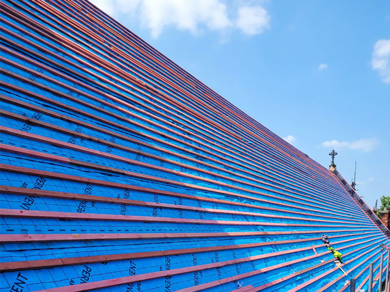 The installation of Permavent APEX at St. Patrick’s Church began with the careful preparation of the roof structure, which included the removal of damaged materials and a thorough inspection of the existing timbers.